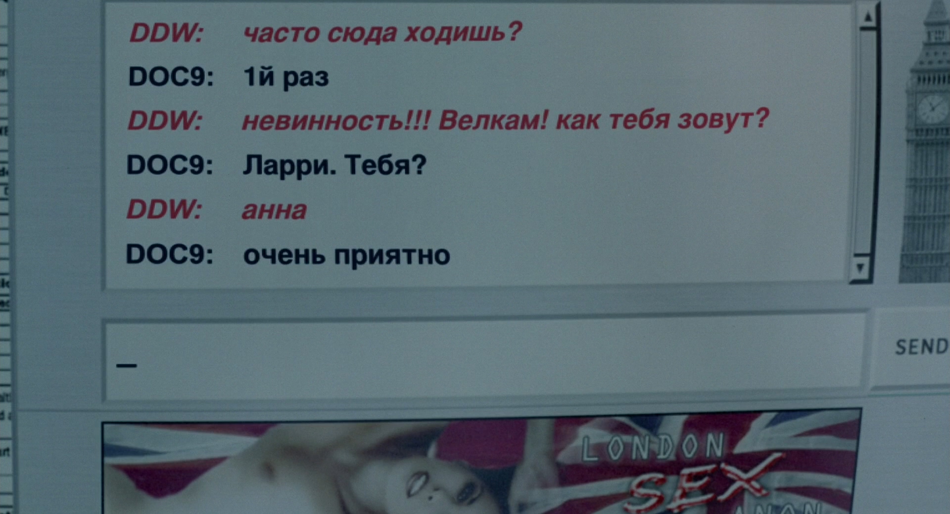 래리는 처음 등장씬부터 섹스광으로 나온다. 인터넷 랜덤채팅에서 한명 낚아서 섹스 할 생각 으로