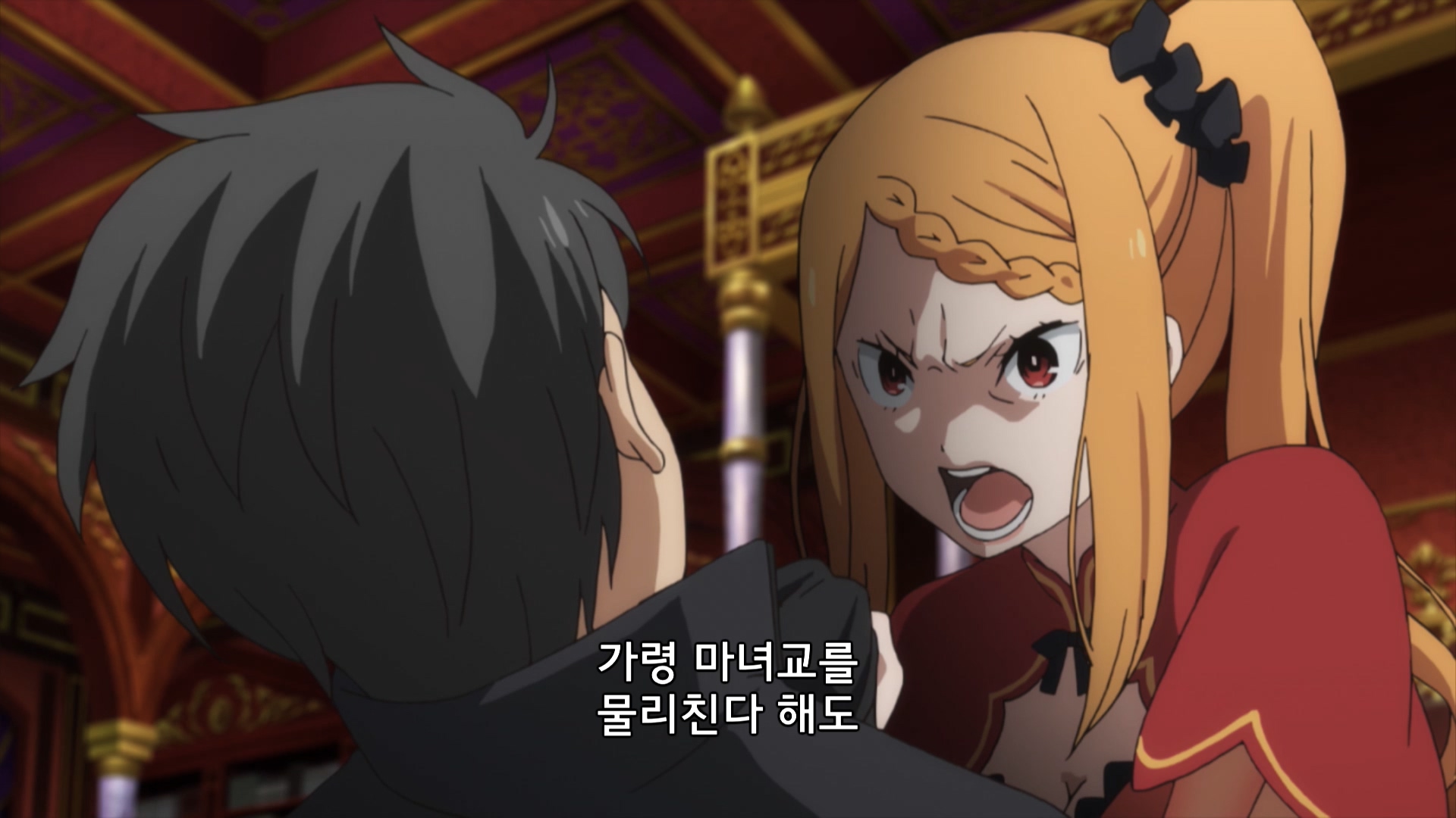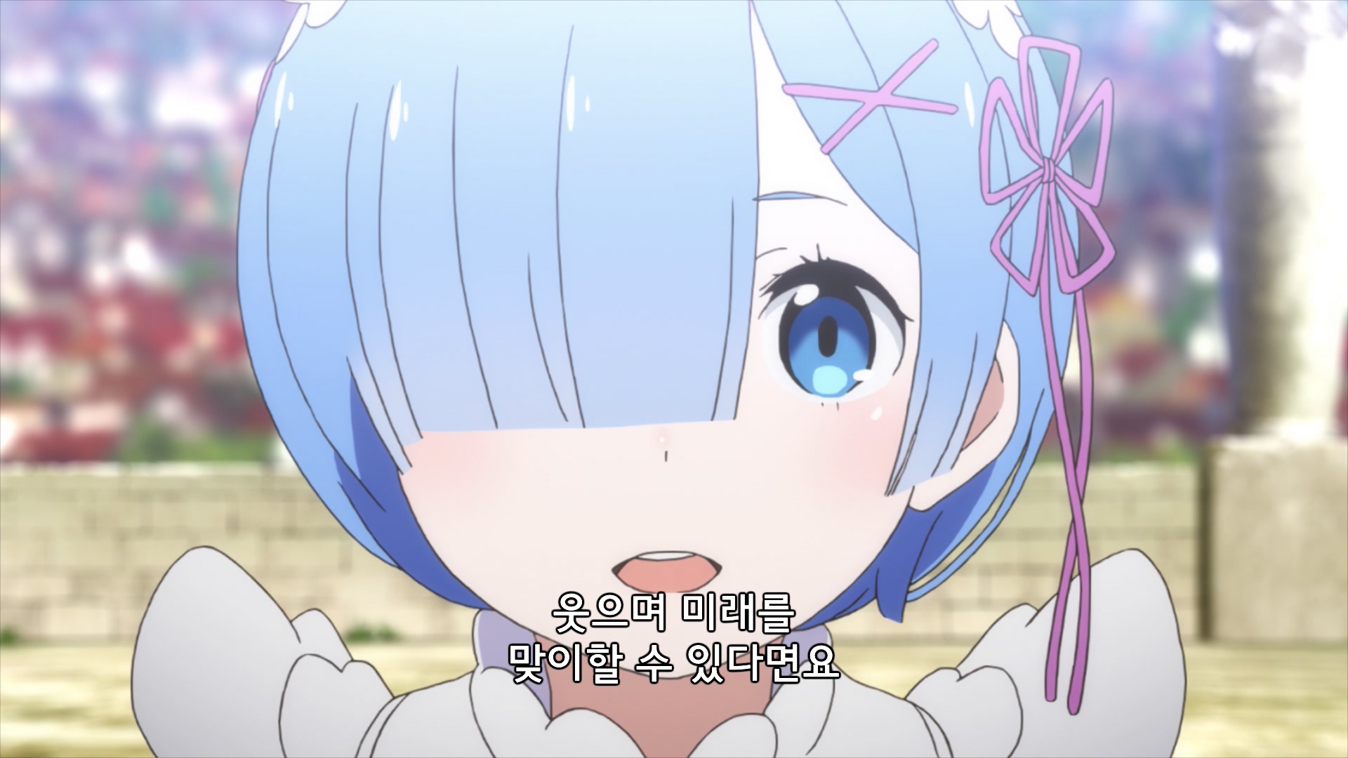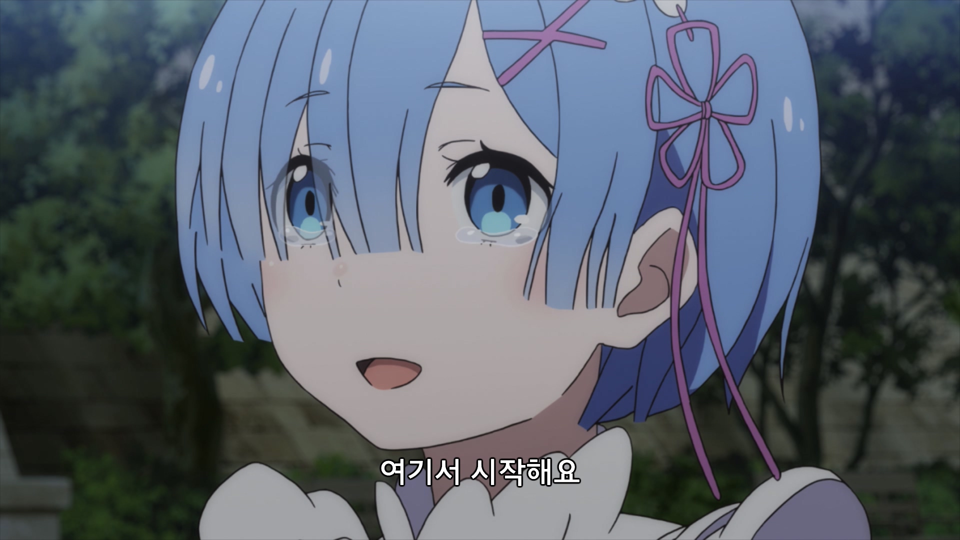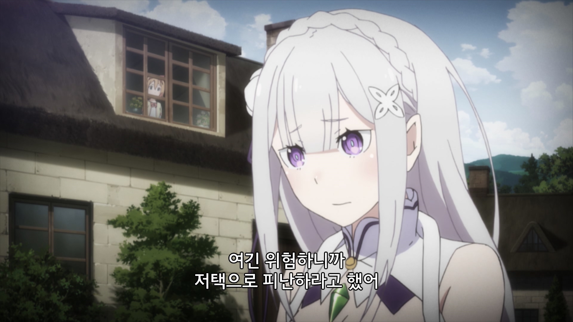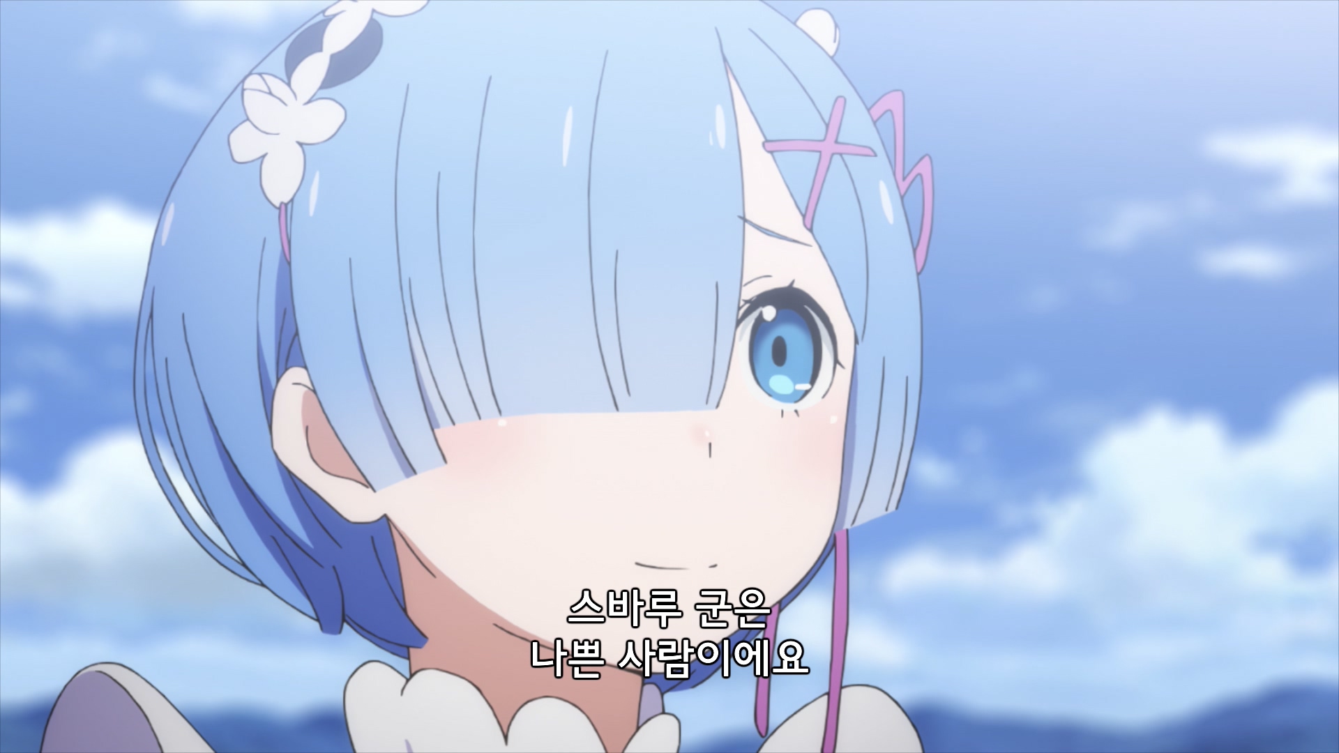 리제로를 보기 전에는 리제로하면 렘이라는 말을 많이 들었어서 렘이 타이틀 히로인인줄 알았는데 실제로 시청하니 사실 에밀리아가 타이틀 히로인 이었다는 사실에 약간 충격을 먹었던 기억이 있습니다. 초반부를 볼 때 까지만 해도 '타이틀 히로인(에밀리아)이 제 구실을 못하는것이 아닌데 어떻게 서브 히로인(렘)이 훨씬 인기가 많지?'라고 생각했었는데, 이에 대한 해답은 바로 이 장면과 후술할 장면에서의 임팩트가 너무 컸던게 아닐까... 생각합니다.