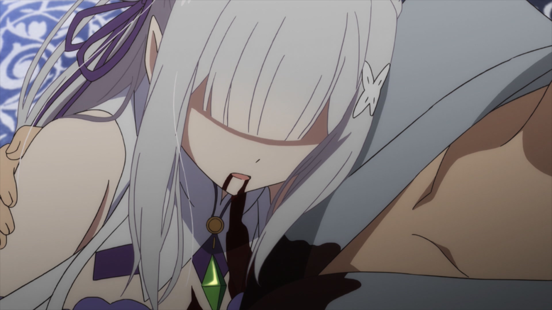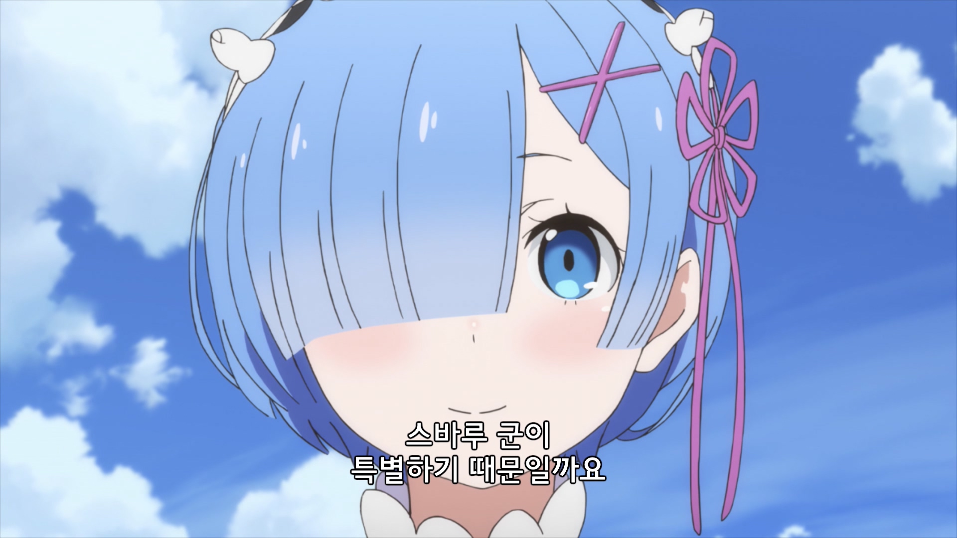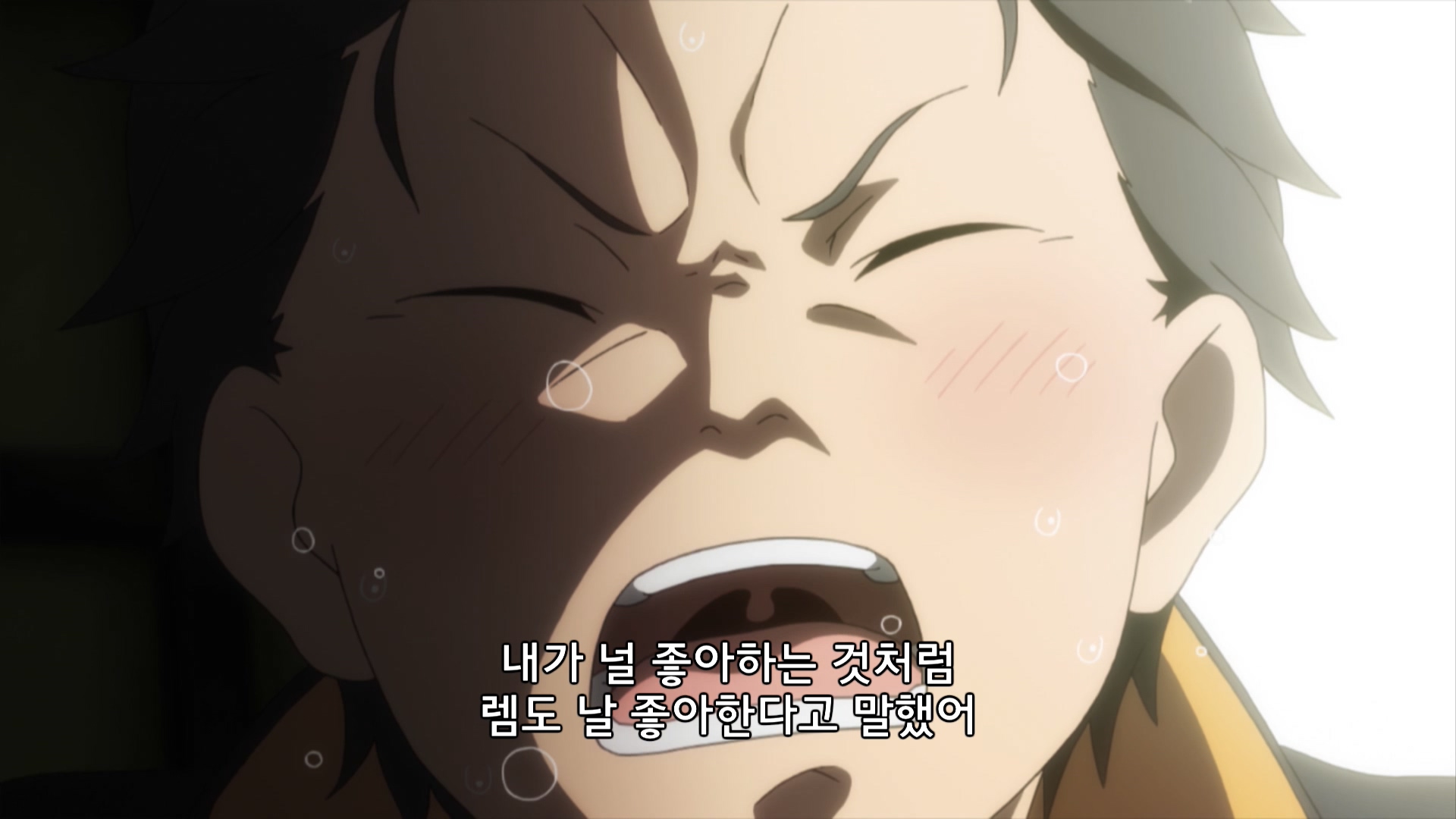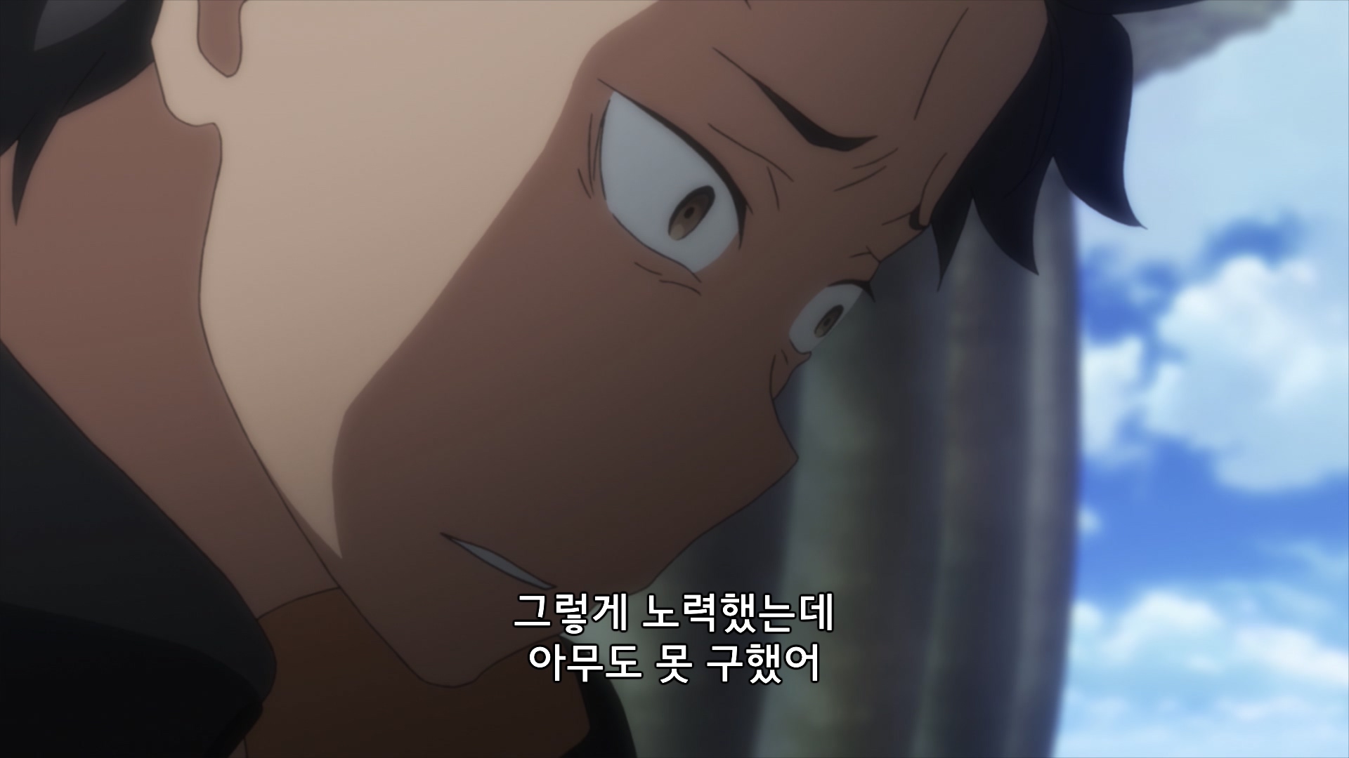 리제로를 보기 전에는 리제로하면 렘이라는 말을 많이 들었어서 렘이 타이틀 히로인인줄 알았는데 실제로 시청하니 사실 에밀리아가 타이틀 히로인 이었다는 사실에 약간 충격을 먹었던 기억이 있습니다. 초반부를 볼 때 까지만 해도 '타이틀 히로인(에밀리아)이 제 구실을 못하는것이 아닌데 어떻게 서브 히로인(렘)이 훨씬 인기가 많지?'라고 생각했었는데, 이에 대한 해답은 바로 이 장면과 후술할 장면에서의 임팩트가 너무 컸던게 아닐까... 생각합니다.