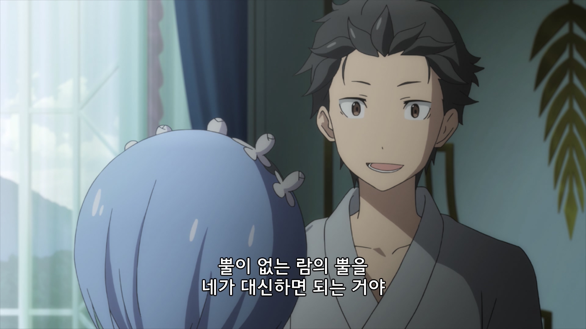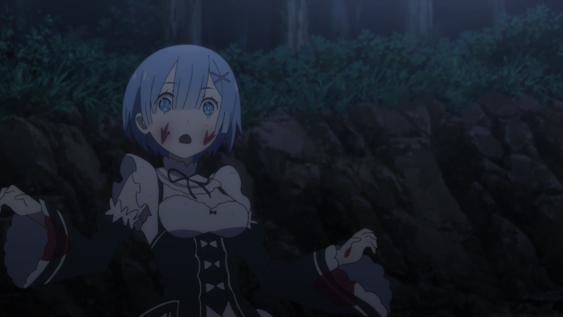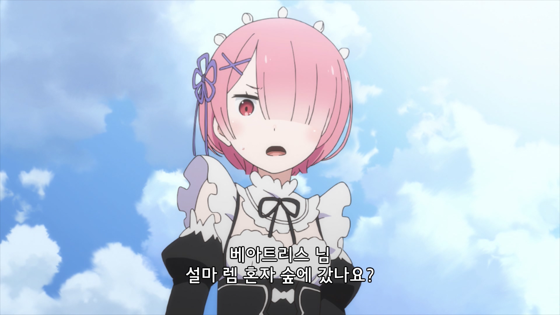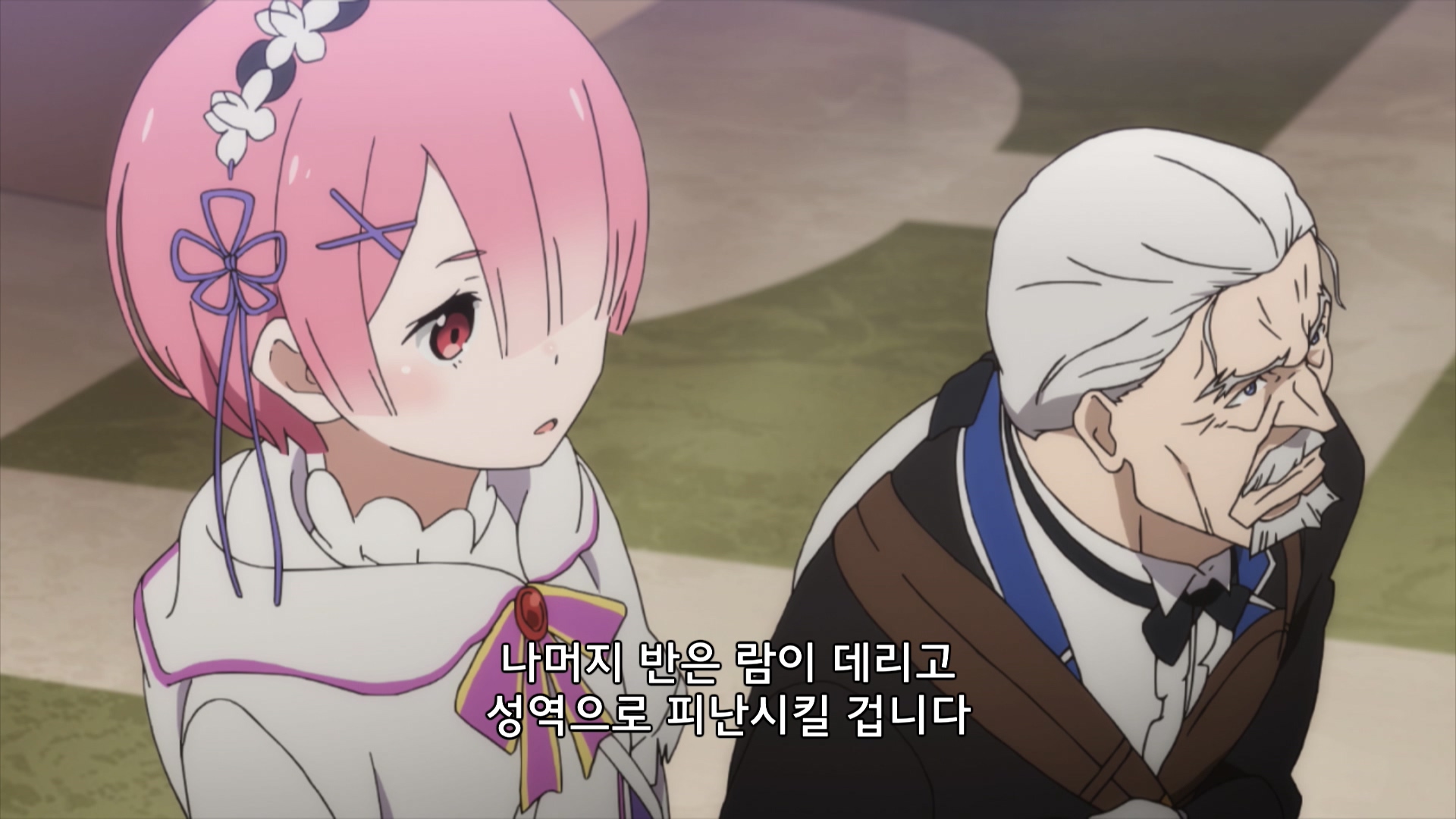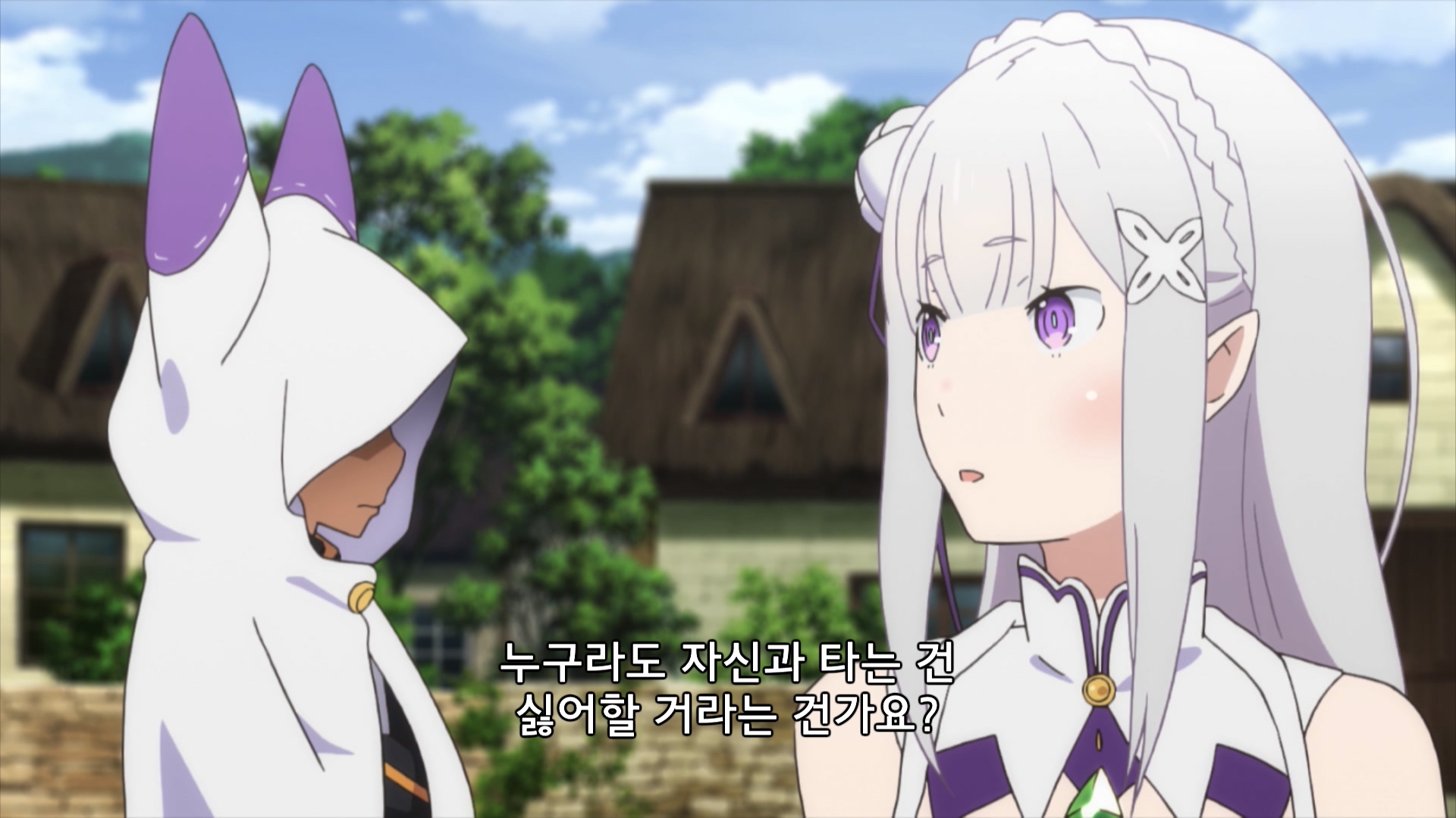 리제로를 보기 전에는 리제로하면 렘이라는 말을 많이 들었어서 렘이 타이틀 히로인인줄 알았는데 실제로 시청하니 사실 에밀리아가 타이틀 히로인 이었다는 사실에 약간 충격을 먹었던 기억이 있습니다. 초반부를 볼 때 까지만 해도 '타이틀 히로인(에밀리아)이 제 구실을 못하는것이 아닌데 어떻게 서브 히로인(렘)이 훨씬 인기가 많지?'라고 생각했었는데, 이에 대한 해답은 바로 이 장면과 후술할 장면에서의 임팩트가 너무 컸던게 아닐까... 생각합니다.