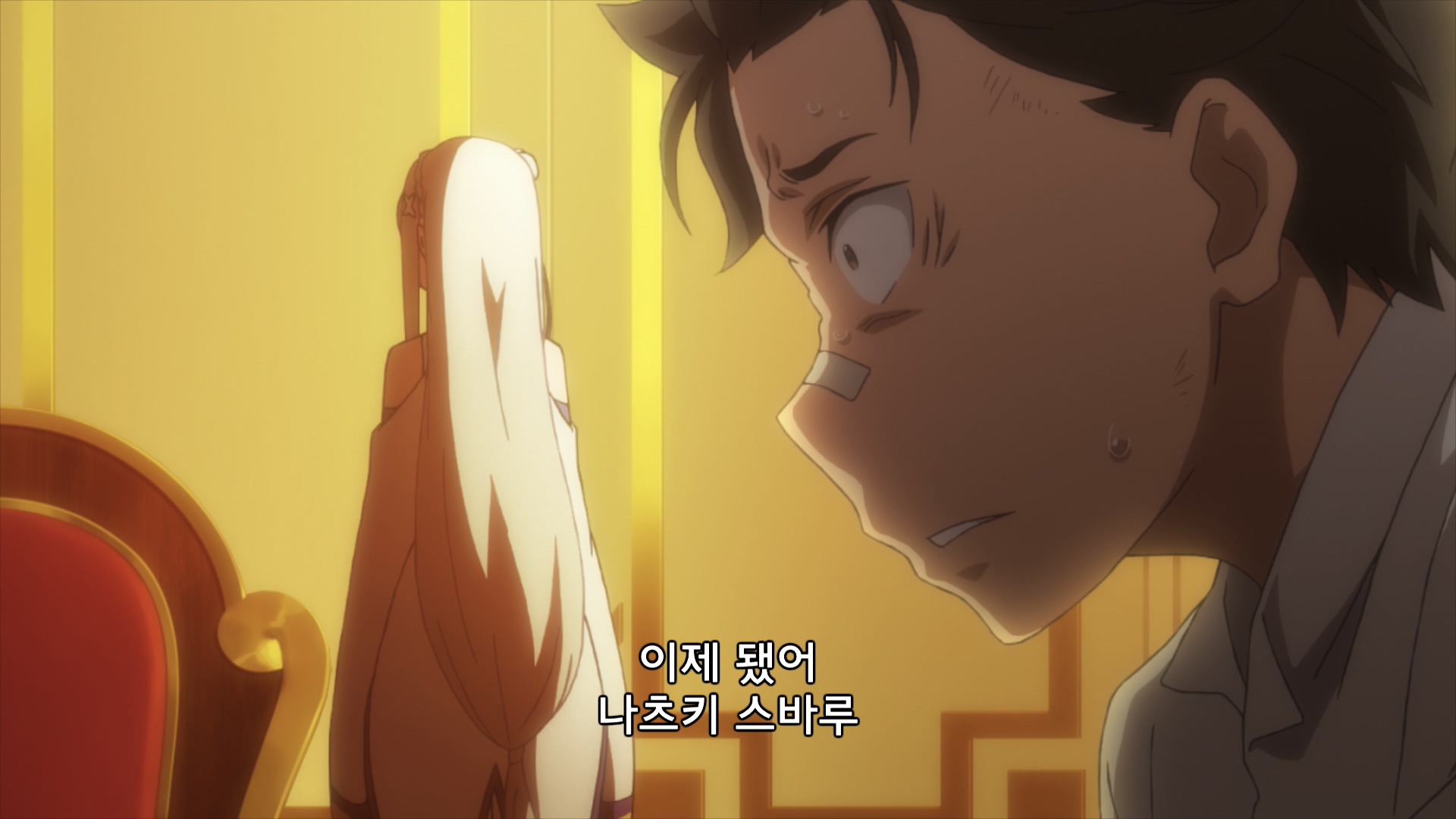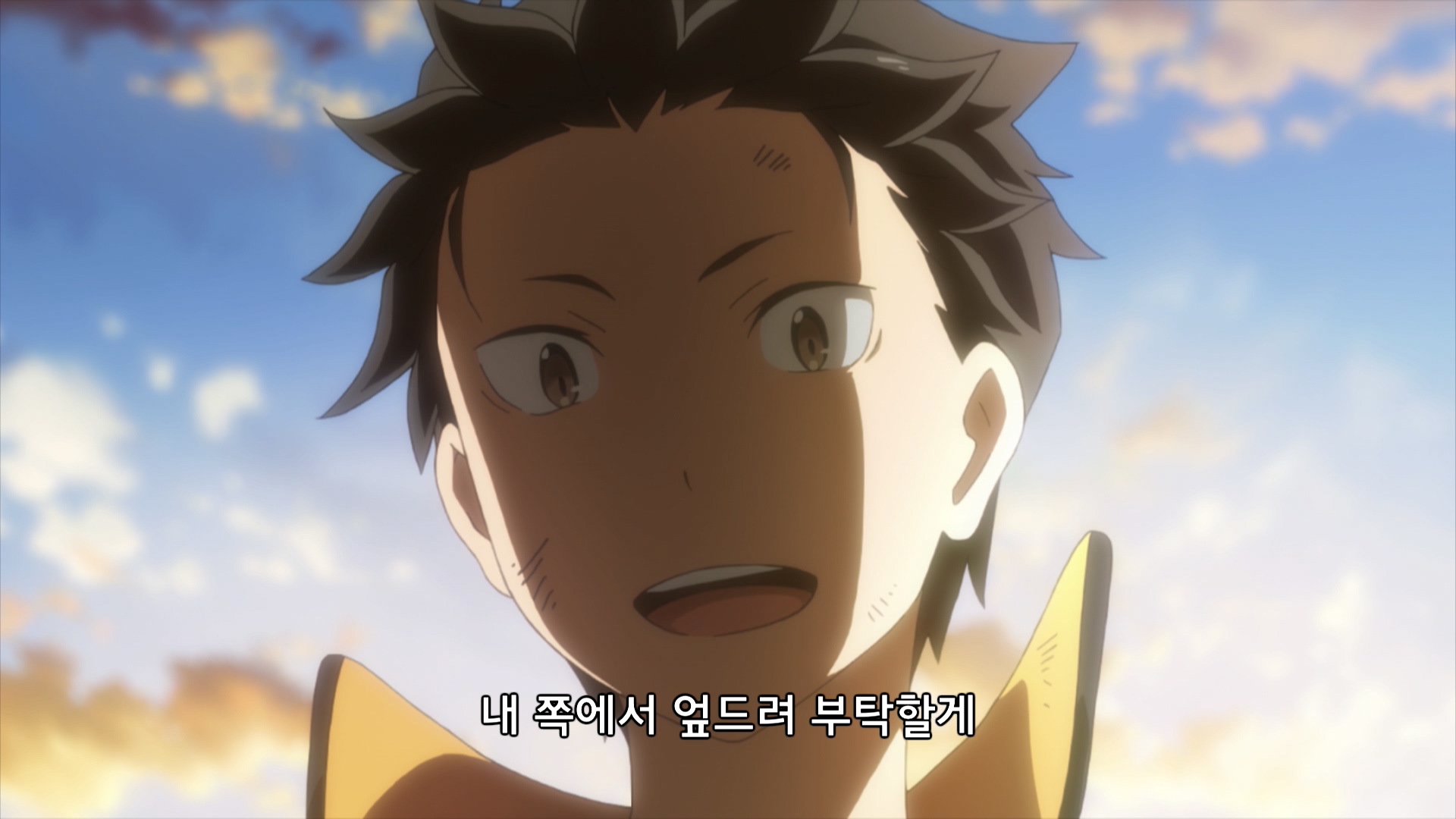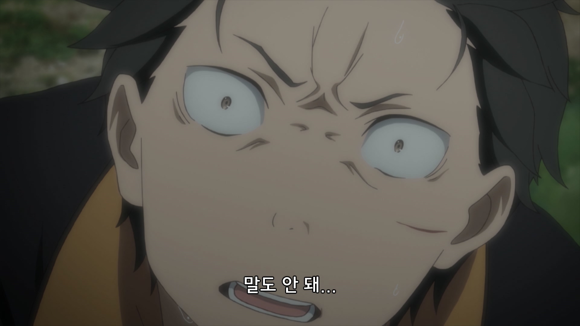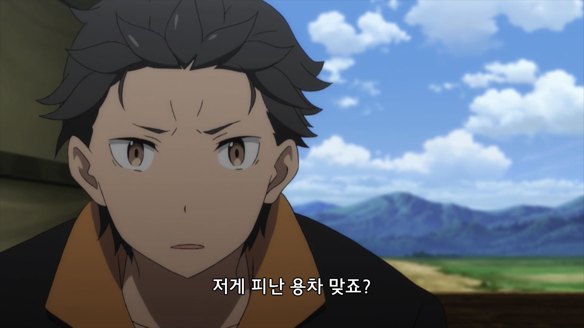 솔직히 필자 본인도 이 장면, 그리고 이후 장면에서 나오는 스바루의 추태를 지켜보며 정말 봐주기 힘든 작품이라고 생각했습니다. 시청자로 하여금 보기 괴로울 정도로 스바루가 찌질함의 극치를 보여주거든요. 이 시기쯤 해서 하차하시는 분들이 꽤 있다고 들었을 정도입니다. 하지만 참고 보다보면 주인공이 본인이 처한 역경을 극복하는 과정에서 자신의 문제점을 깨닫고, 자신이 모든 것을 떠안고 직접 강해져서 문제 해결을 하기 보다는 당장 전력에 필요한 조력자들을 찾아다니며 일일이 부탁하는 모습을 보며, 개인적으론 인간으로써 한 단계 성장했다는 것을 보여줘 성장드라마같은 소년물에 가깝다고 느껴졌기 때문에 작가가 무슨 의도로 이렇게 연출 했는지는 이해가 되었습니다만, 그럼에도 주인공 대우가 개차반이라고 생각 되기도 하는 싱숭생숭한 느낌입니다.