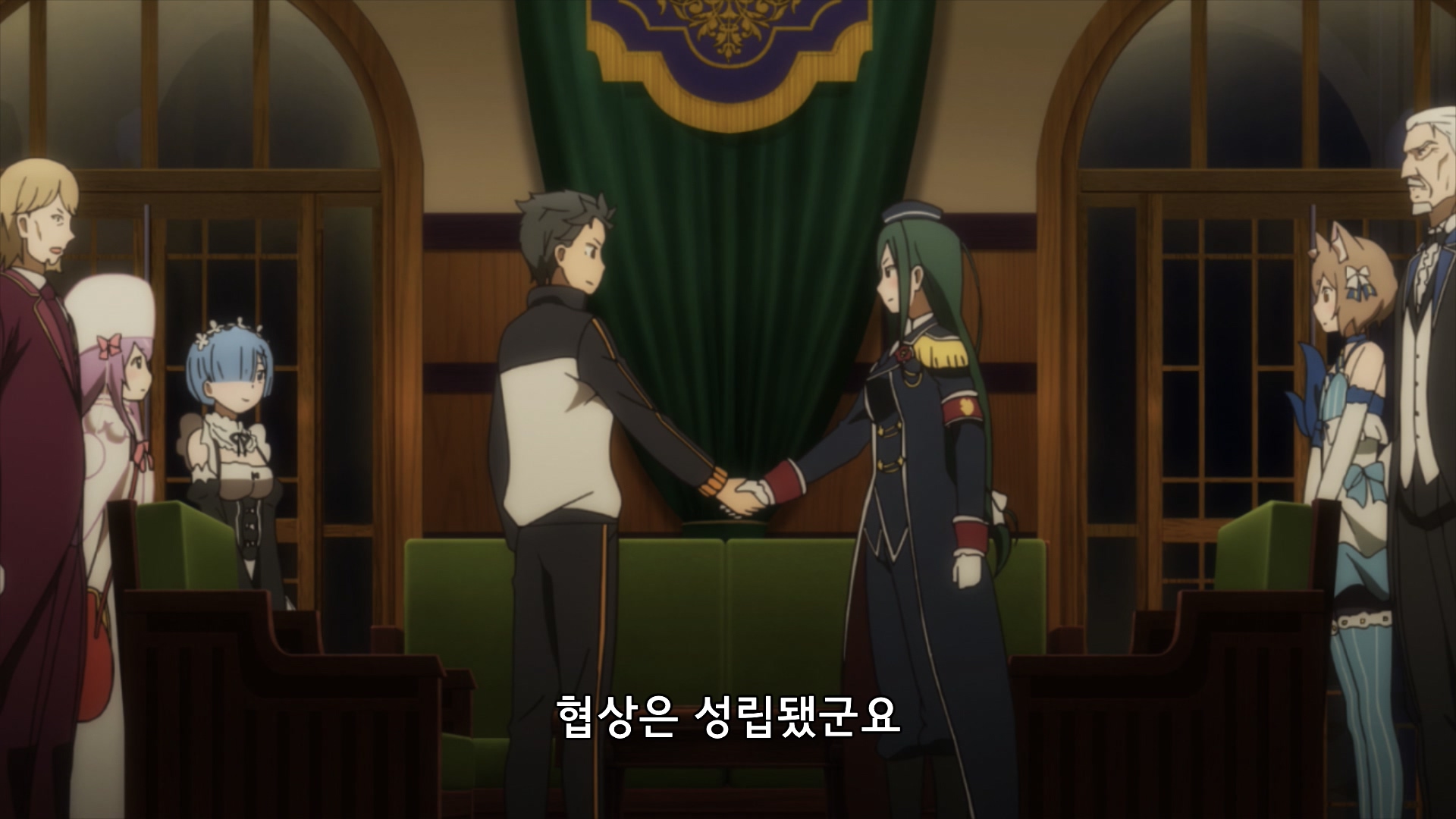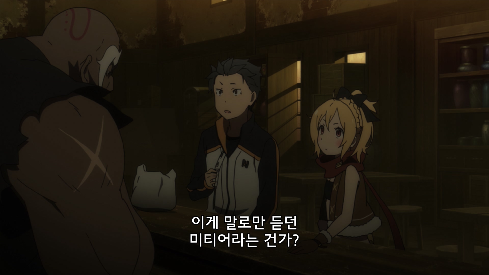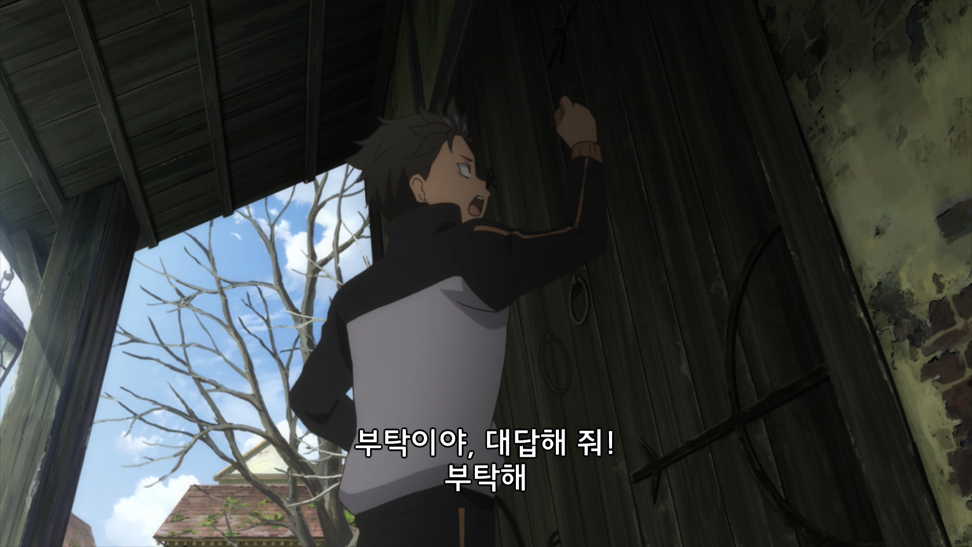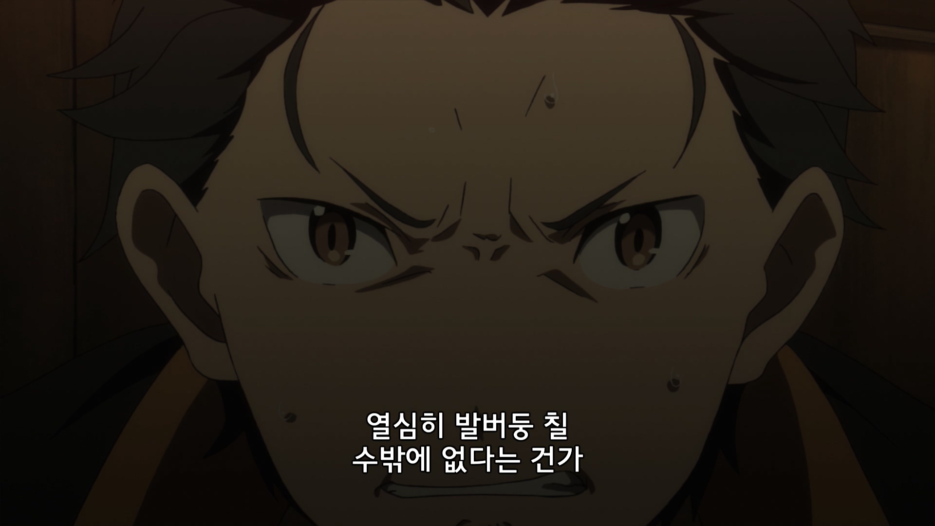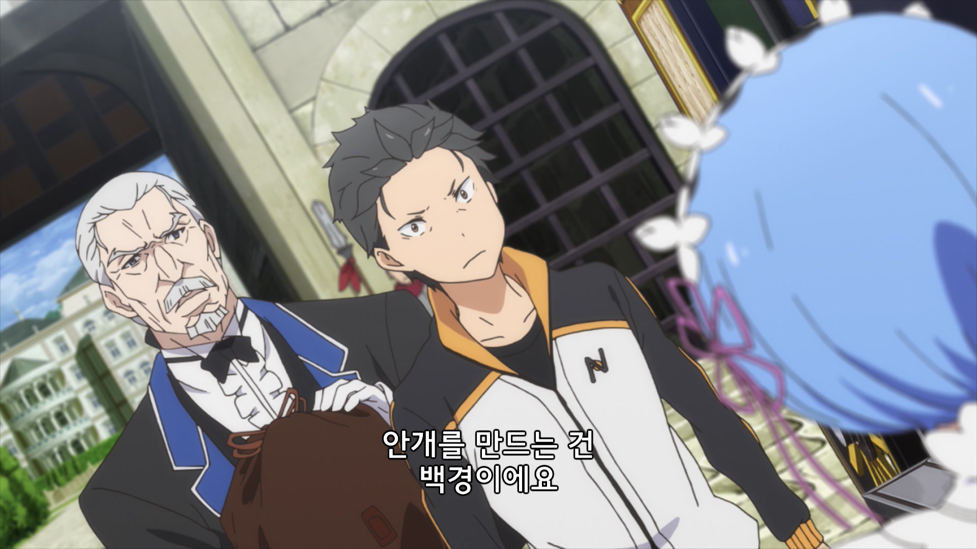 솔직히 필자 본인도 이 장면, 그리고 이후 장면에서 나오는 스바루의 추태를 지켜보며 정말 봐주기 힘든 작품이라고 생각했습니다. 시청자로 하여금 보기 괴로울 정도로 스바루가 찌질함의 극치를 보여주거든요. 이 시기쯤 해서 하차하시는 분들이 꽤 있다고 들었을 정도입니다. 하지만 참고 보다보면 주인공이 본인이 처한 역경을 극복하는 과정에서 자신의 문제점을 깨닫고, 자신이 모든 것을 떠안고 직접 강해져서 문제 해결을 하기 보다는 당장 전력에 필요한 조력자들을 찾아다니며 일일이 부탁하는 모습을 보며, 개인적으론 인간으로써 한 단계 성장했다는 것을 보여줘 성장드라마같은 소년물에 가깝다고 느껴졌기 때문에 작가가 무슨 의도로 이렇게 연출 했는지는 이해가 되었습니다만, 그럼에도 주인공 대우가 개차반이라고 생각 되기도 하는 싱숭생숭한 느낌입니다.