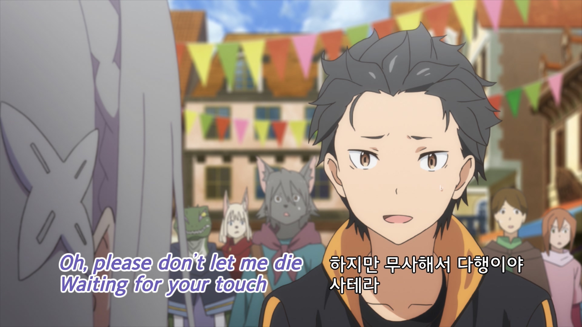 이로써 1기 리뷰는 벌써 마무리할 시간이 되었네요. 위에 영상은 2쿨 엔딩으로 사용된 에밀리아 성우의 Stay alive 라는 곡입니다. 해당 곡은 중요할 때 마다 BGM으로 흘러나오거나 엔딩으로 삽입되어 분위기를 고조시키는데 한몫한 곡이구요, 처음 들었을 때부터 정말 아름다운 곡이라고 생각했습니다. 사람마다 받은 느낌이 다르겠지만 저의 경우 가사의 시작부터 '미완성된 퍼즐' 이라고 하는데, 마치 스바루가 있어야 할 자리에 없어져서 방황하고 있다는 느낌을 받았습니다. 즉, 스바루가 죽고 사망회귀 한 뒤 혼자 남겨진 에밀리아가 애절하게 스바루를 찾으며 부르는 노래인 것 같다는 느낌이 들은데다, 에밀리아의 성우인 타카하시 리에가 캐릭터를 연기할 때 보다 한층 더 애절한 목소리로 불러서 그런지 너무 애잔했습니다.