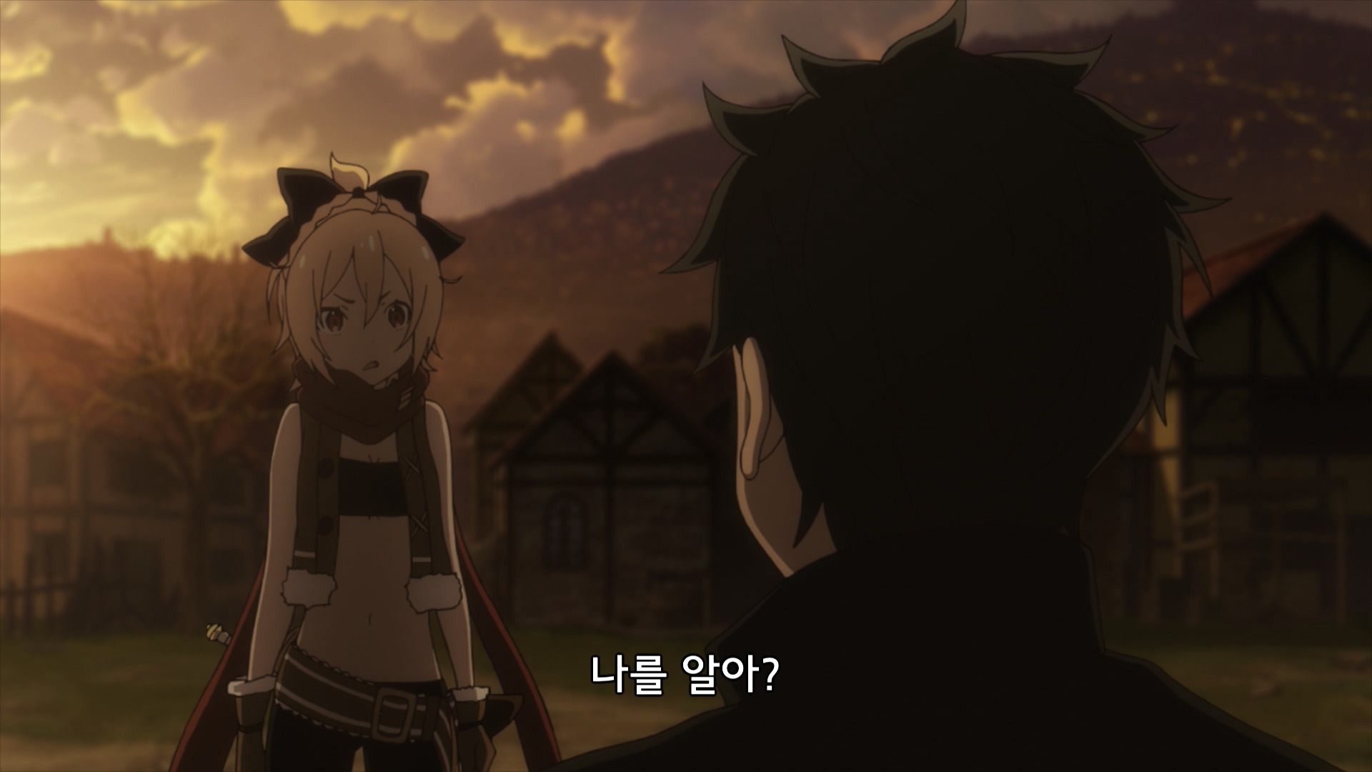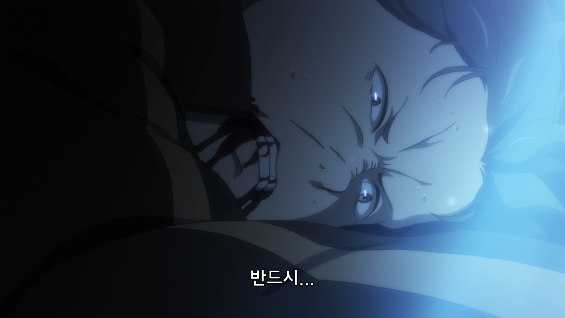 보통 루프물이라고 하면 반전을 이유로 작품 후반부에 드러나는 경향이 짙습니다. 예를 들고 싶지만 그 작품에 대한 스포일러가 될 수 있어서 예를 들지는 못할 거 같네요. 아무튼, 리제로에서는 첫 화부터 대놓고 루프물이라는 것을 보여줬습니다. 처음 제목을 들을때는 아무 느낌도 없지만 이 장면을 보고나선 작품 제목부터 이러한 점을 암시했다고 생각할 수 있습니다. 이세계에서 다시 새출발 한다는 것이 아닌 죽음으로부터 다시 시작한다는 것을 암시했죠. 이러한 것들을 첫화에 모조리 때려박으니 다음화가 궁금해서 미칠 지경이었습니다.