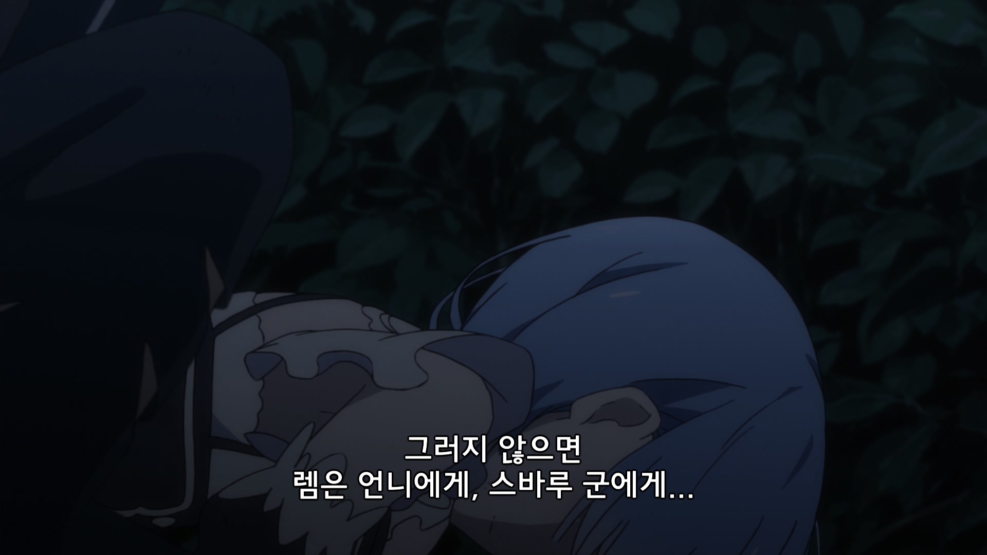 마수와의 전투에서 스바루는 무사하게도 치료를 받고 의식에서 깨어나게 되며, 베아트리스에게 스바루의 목숨이 얼마 남지 않았다는 것과 렘이 어디로 향했는지를 듣게 됩니다. 스바루를 위해 렘은 역시 각성한채로 싸우고 있었고 람과 스바루는 렘을 구하러 가게 됩니다. 렘을 구하는 데 성공하지만 마수의 양이 너무 많아 각성한 채로 싸움을 지속하여 힘을 모두 소모한 렘과 도깨비 뿔이 없어 힘이 약한 람이 뚫고 나갈 수 있는 양이 아니었고, 스바루는 자신을 미끼삼아 둘이 빠져나가는 계획을 세우고 그렇게 스바루가 시간을 벌어주는 와중 로즈월이 등장하여 일대를 정리하고 사건은 일단락 됩니다. 이후 렘과 스바루와의 유대가 깊어지고 '그 장면'이 나옵니다.