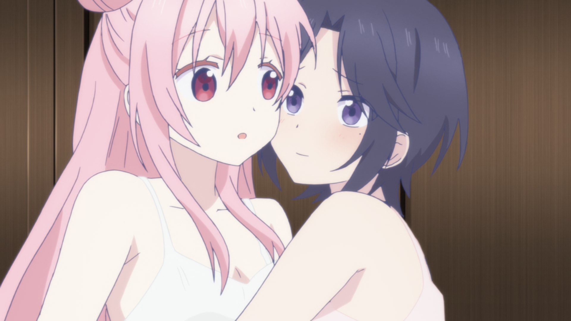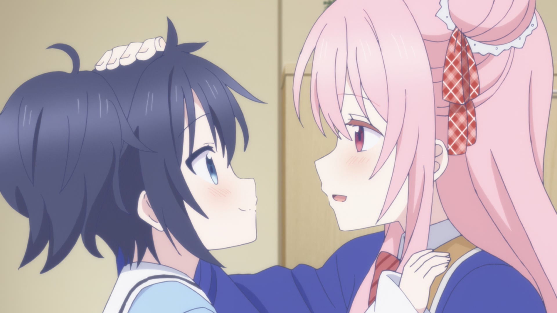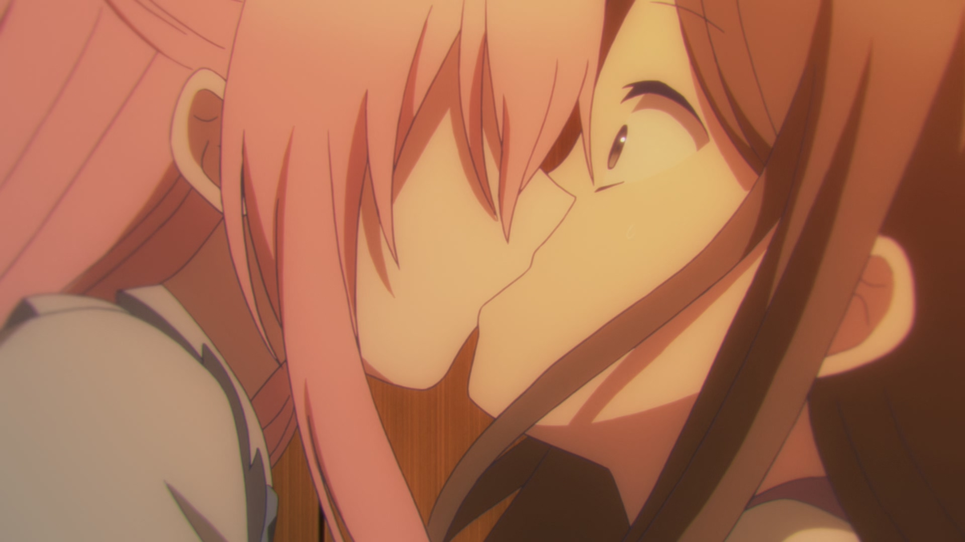 '해피 슈가 라이프'는 백합물이지만 백합이라는 것이 강조되는 작품은 아닙니다. 가끔 이렇게 여캐릭터끼리 부대끼는 장면이 있긴 하지만 여러가지 부분에서 다른 작품들과 차별점을 갖고 있는데요.