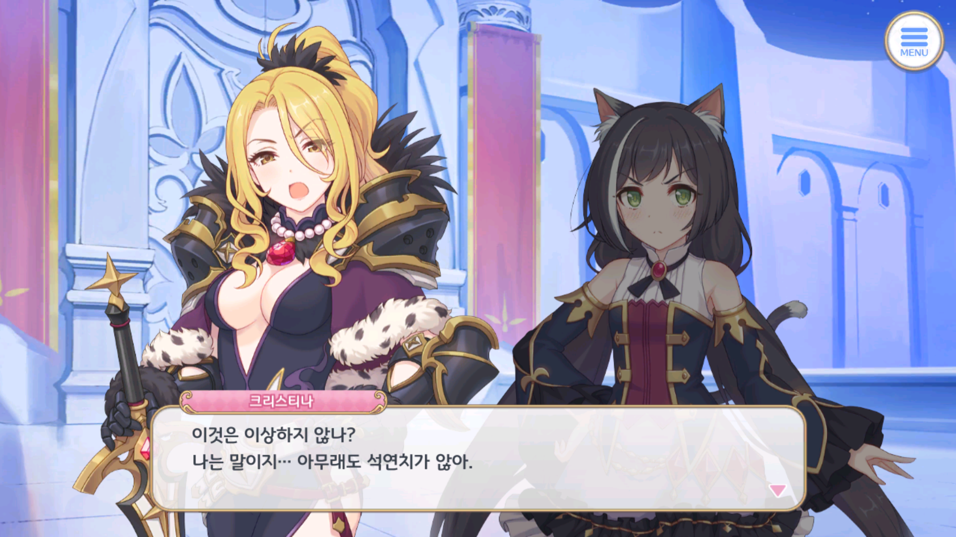 그리고 원작에서는 메인 스토리 1부 2장에서 위의 사진처럼 크리스티나의 언급이 있는데, 총 15장으로 이루어진 원작의 1부 메인 스토리의 초반부 부터 이야기를 흥미롭게 이끌어가기 위한 빌드업을 탄탄히 다져놓았다고 할 수 있겠습니다. 하지만 애니메이션은 초반부에 패동황제와 캬루와의 씬이 즐비한것 치고는 해당 씬들에서 캬루와 패동황제 사이에 흐르는 묘한 감정선만 연출했지 딱히 떡밥을 던지지 않았기 때문에 이러한 부분은 다소 아쉽게 느껴졌습니다.